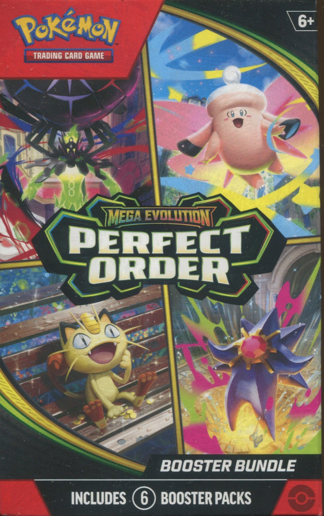 - Expand your collection with this Booster Bundle containing six booster packs from Pokémon TCG: Mega Evolution—Perfect Order!