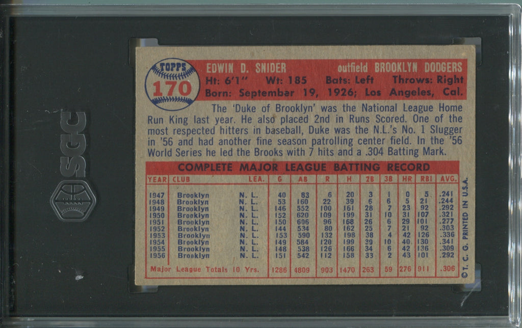 1957 Duke Snider Topps SGC 5 #170 Brooklyn Dodgers HOF 5771