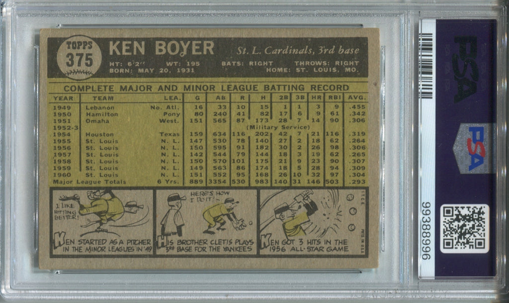 1961 Ken Boyer Topps PSA 3 #375 St. Louis Cardinals HOF 8996