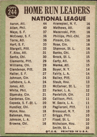 1967 Topps 1966 NATIONAL LEAGUE HOME RUN LEADERS AARON ALLEN MAYS #244 Braves Phillies Giants
