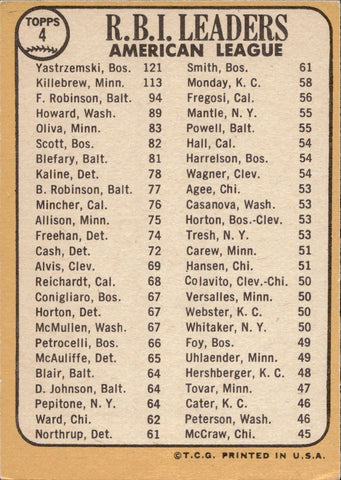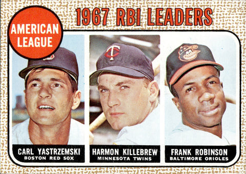 1968 Topps 1967 AMERICAN LEAGUE RBI LEADERS YASTRZEMSKI KILLEBREW ROBINSON #4 Red Sox Twins Orioles BV$15