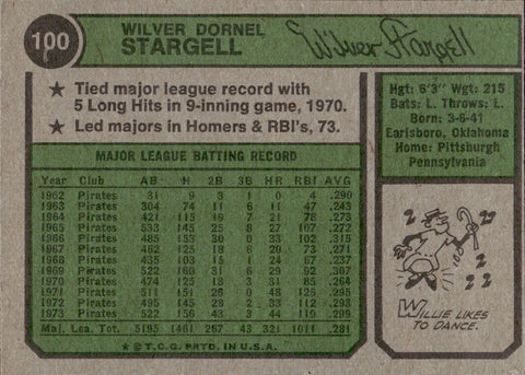 1974 Willie Stargell Topps #100 Pittsburgh Pirates BV$30