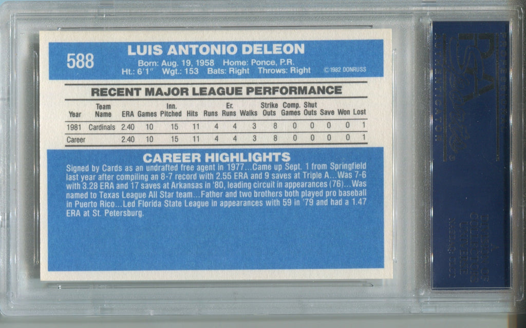1982 Luis De Leon Donruss PSA 9 #588 St. Louis Cardinals 0139