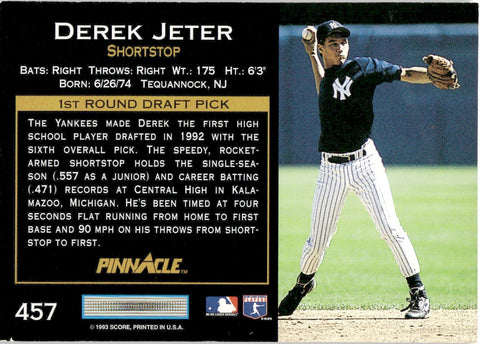 1993 Derek Jeter Pinnacle ROOKIE RC #457 New York Yankees 4