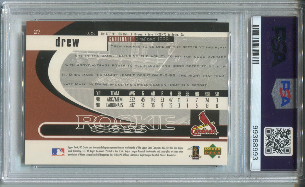 1999 J.D. Drew UD Choice ROOKIE CLASS PSA 9 #27 St. Louis Cardinals 8993