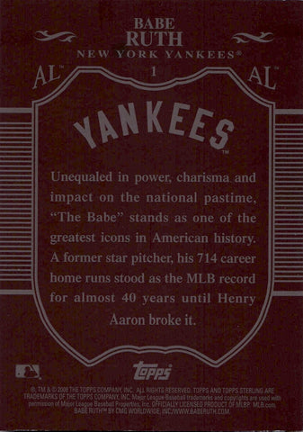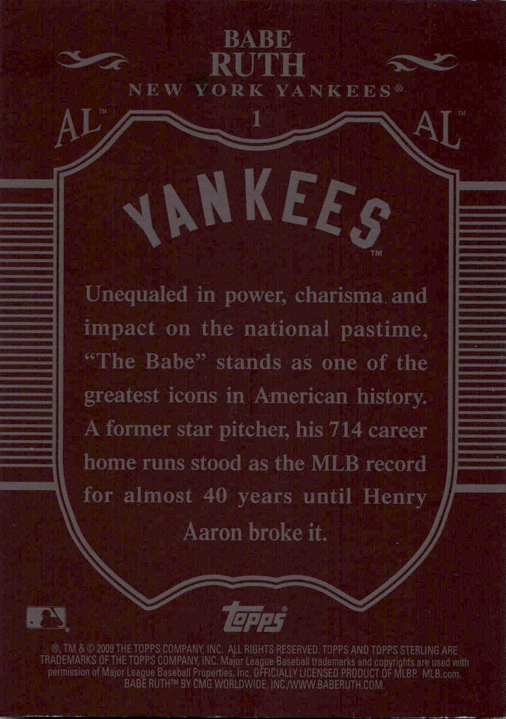 2000 Babe Ruth Topps Sterling BURGUNDY SP 09/10 #1 New York Yankees HOF