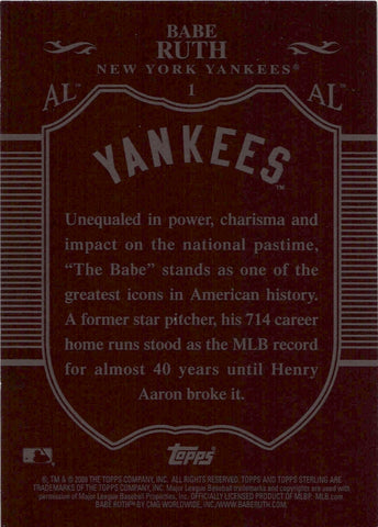 2000 Babe Ruth Topps Sterling BURGUNDY SP 09/10 #1 New York Yankees HOF