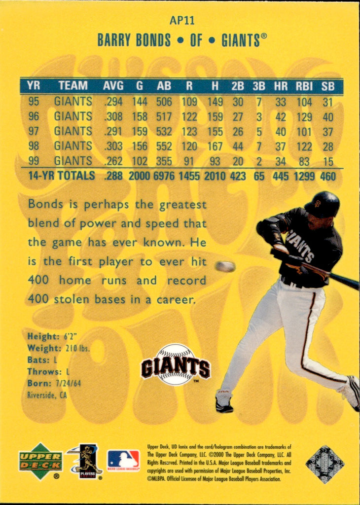 2000 Barry Bonds Upper Deck Ionix AWESOME POWERS San Francisco Giants #AP11