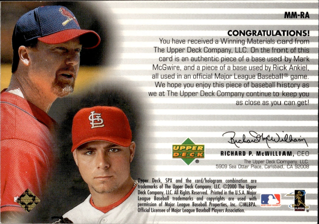 2000 Mark McGwire Rick Ankiel Upper Deck SPx WINNING MATERIALS DUAL BASE #MM-RA St. Louis Cardinals