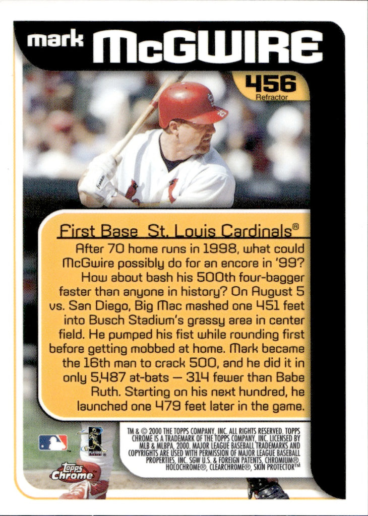 2000 Mark McGwire Topps Chrome SEASON HIGHLIGHTS REFRACTOR #456 St. Louis Cardinals