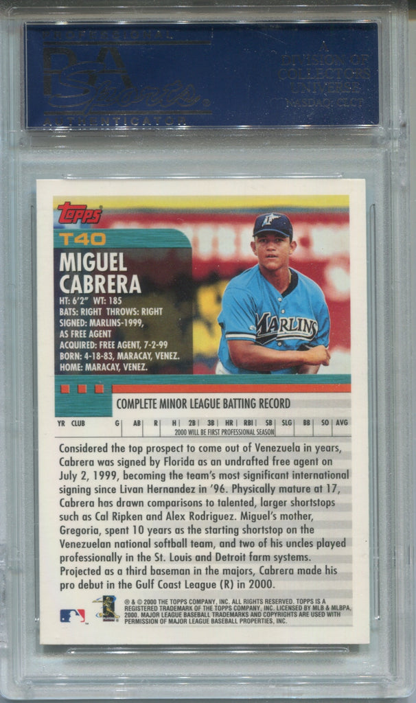 2000 Miguel Cabrera Topps Traded ROOKIE RC PSA 10 #T40 Florida Marlins 4873