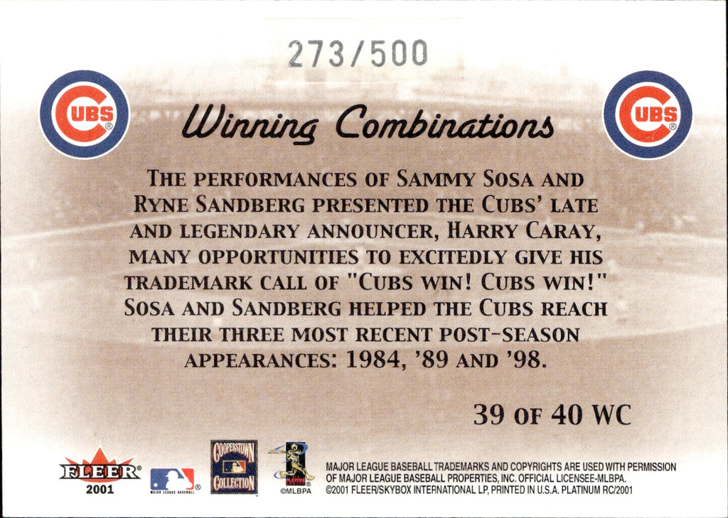 2001 Sammy Sosa Ryne Sandberg Fleer Platinum Winning Materials 273/500 #39 Chicago Cubs