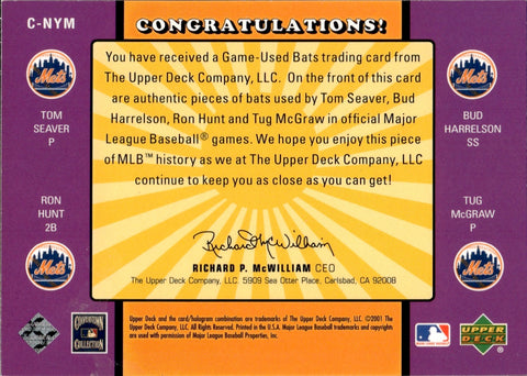 2001 Tom Seaver Bud Harrelson Ron Hunt Tug McGraw Upper Deck DECADE QUAD GAME USED BAT RELIC #C-NYM New York Mets