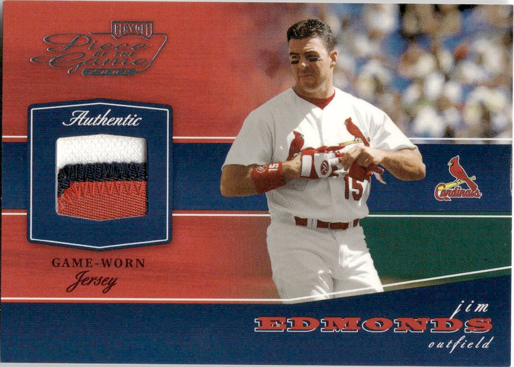 2002 Jim Edmonds Playoff PIECE OF THE GAME GAME-WORN JERSEY PATCH 3 COLOR #POG-35 St. Louis Cardinals