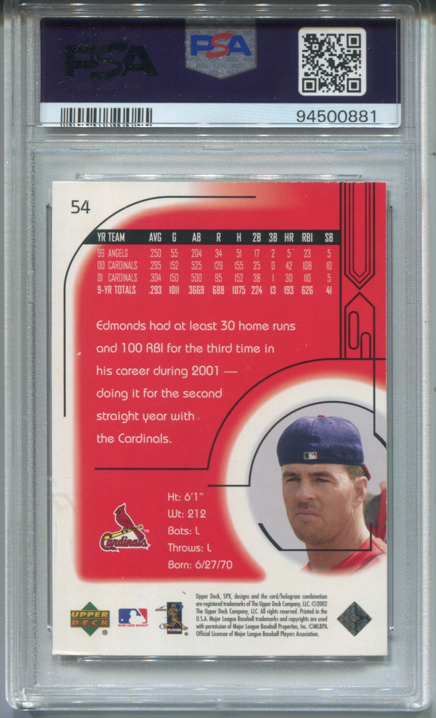 2002 Jim Edmonds Upper Deck SPx PSA 7 #54 St. Louis Cardinals 0881