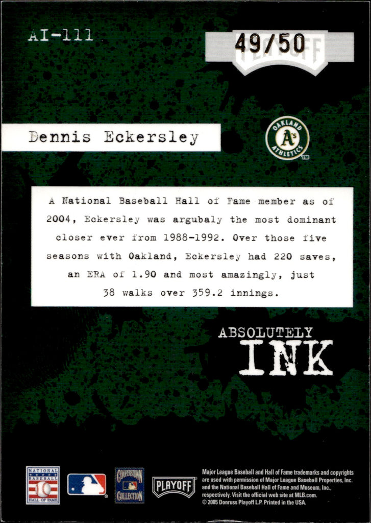 2005 Dennis Eckersley Playoff Absolute INK AUTO 49/50 AUTOGRAPH #AI-111 Oakland A's HOF