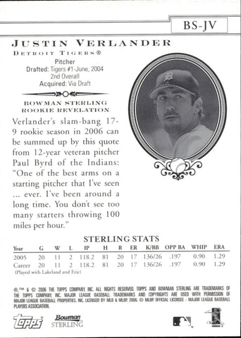 2006 Justin Verlander Bowman Sterling ROOKIE RC #BS-JV Detroit Tigers