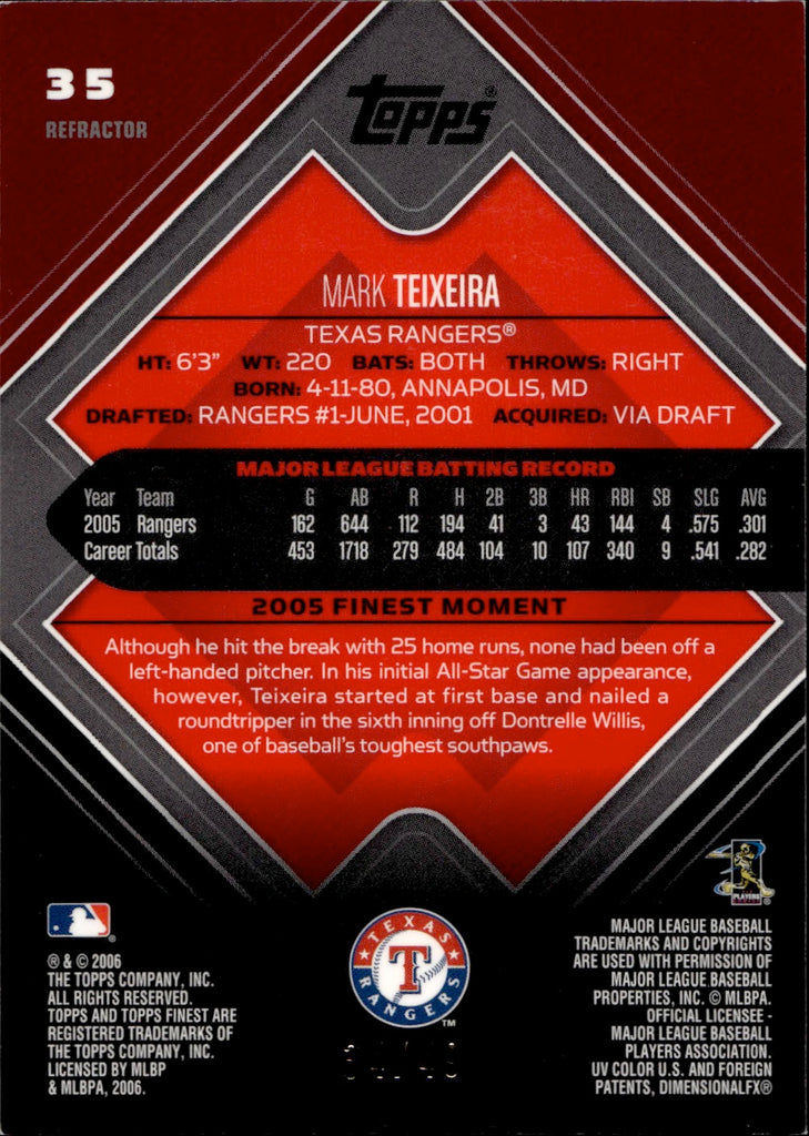 2006 Mark Teixeira Topps Finest GOLD REFRACTOR 34/49 Texas Rangers #35