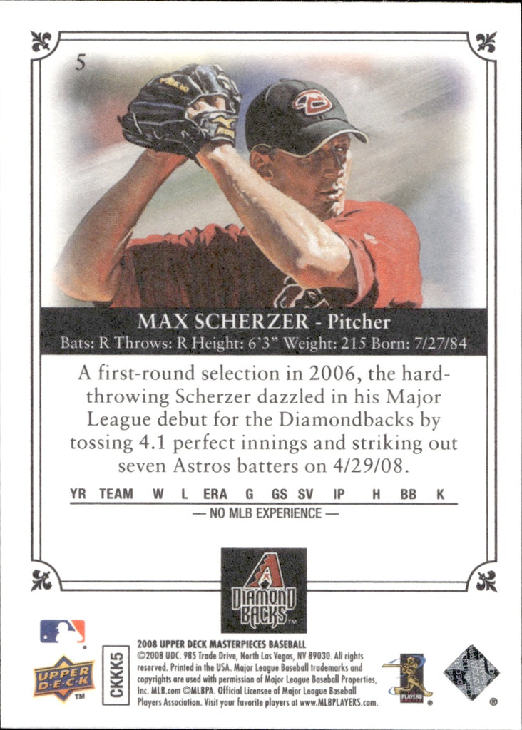 2006 Max Scherzer Upper Deck Masterpieces ROOKIE RC #5 Arizona Diamondbacks