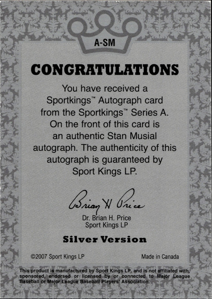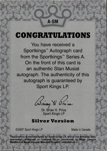 2007 Stan Musial Sportskings SILVER AUTO AUTOGRAPH #A-SM St. Louis Cardinals HOF