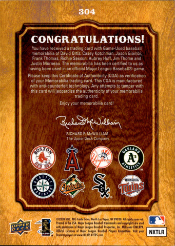 2008 Frank Thomas David Ortiz Justin Morneau Jim Thome Jason Giambi Casey Kotchman Aubrey Huff Richie Sexton Upper Deck Ballpark 8 SWATCH JERSEY RELIC #304 White Sox Red Sox Twins Phillies Yankees Angels Rays Mariners
