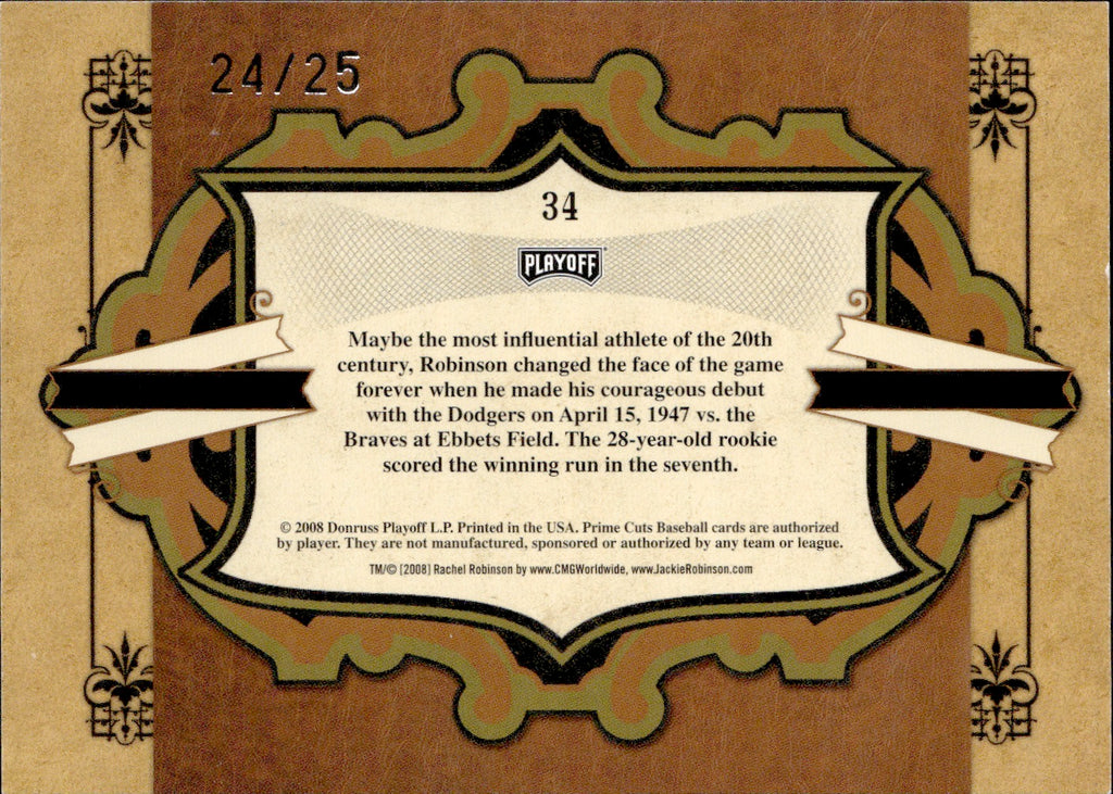 2008 Jackie Robinson Donruss Playoff Prime Cuts ICONS 24/25 #34 Brooklyn Dodgers