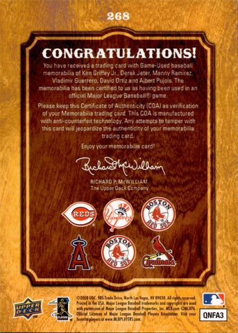 2008 Vladimir Guerrero David Ortiz Albert Pujols Ken Griffey Jr. Derek Jeter Manny Ramirez Upper Deck Ballpark Collection SIX PIECE JERSEY RELIC #268 Angels Red Sox Cardinals Yankees Reds HOF