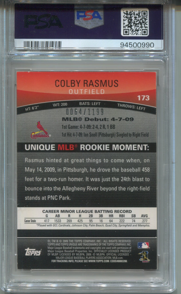 2009 Colby Rasmus Topps Unique RED ROOKIE RC 64/1199 PSA 6 #173 St. Louis Cardinals 0990