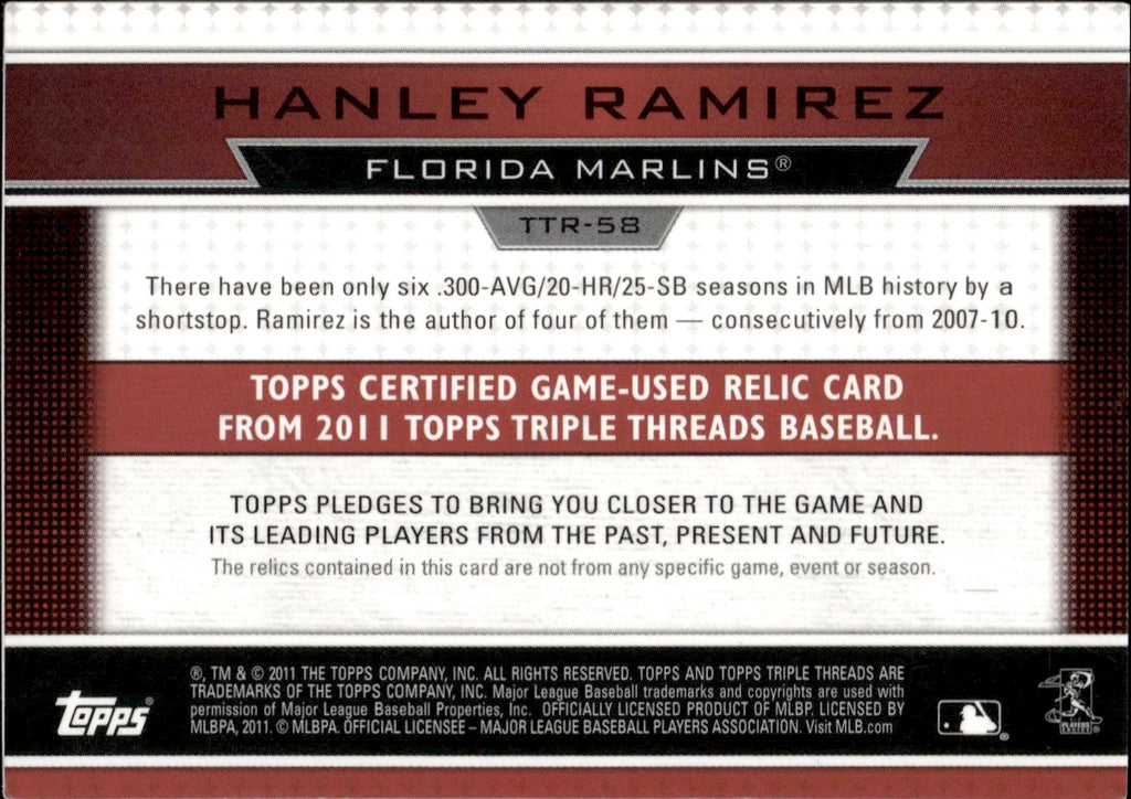 2011 Hanley Ramirez Topps Triple Threads HAN RAM JERSEY 07/36 RELIC ##TTR-58 Florida Marlins