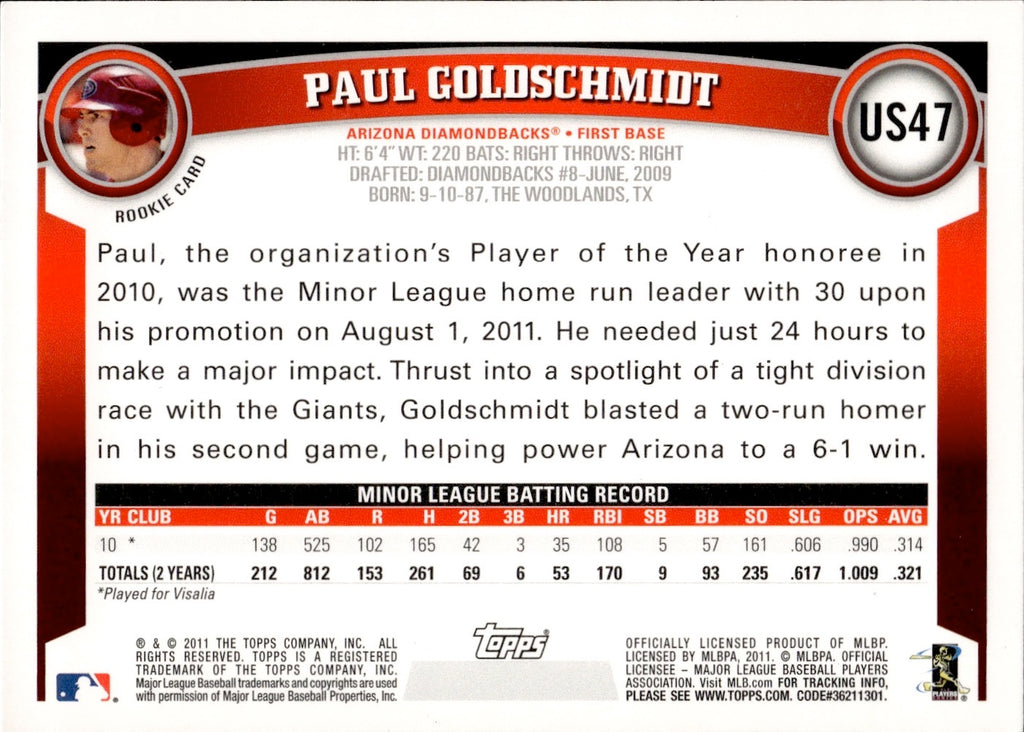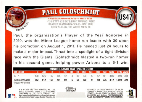 2011 Paul Goldschmidt Topps Update DIAMOND ANNIVERSEY ROOKIE RC #US47 Arizona Diamondbacks