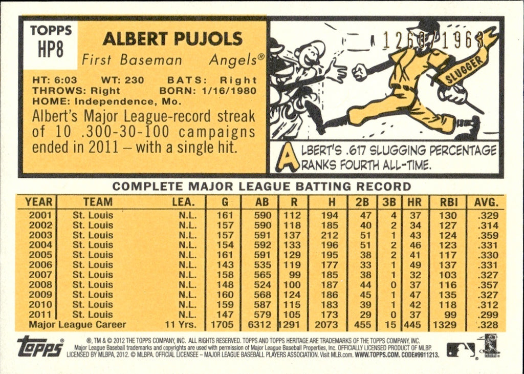 2012 Albert Pujols Topps Heritage Chrome 1260/1963 #HP8 Anaheim Angels