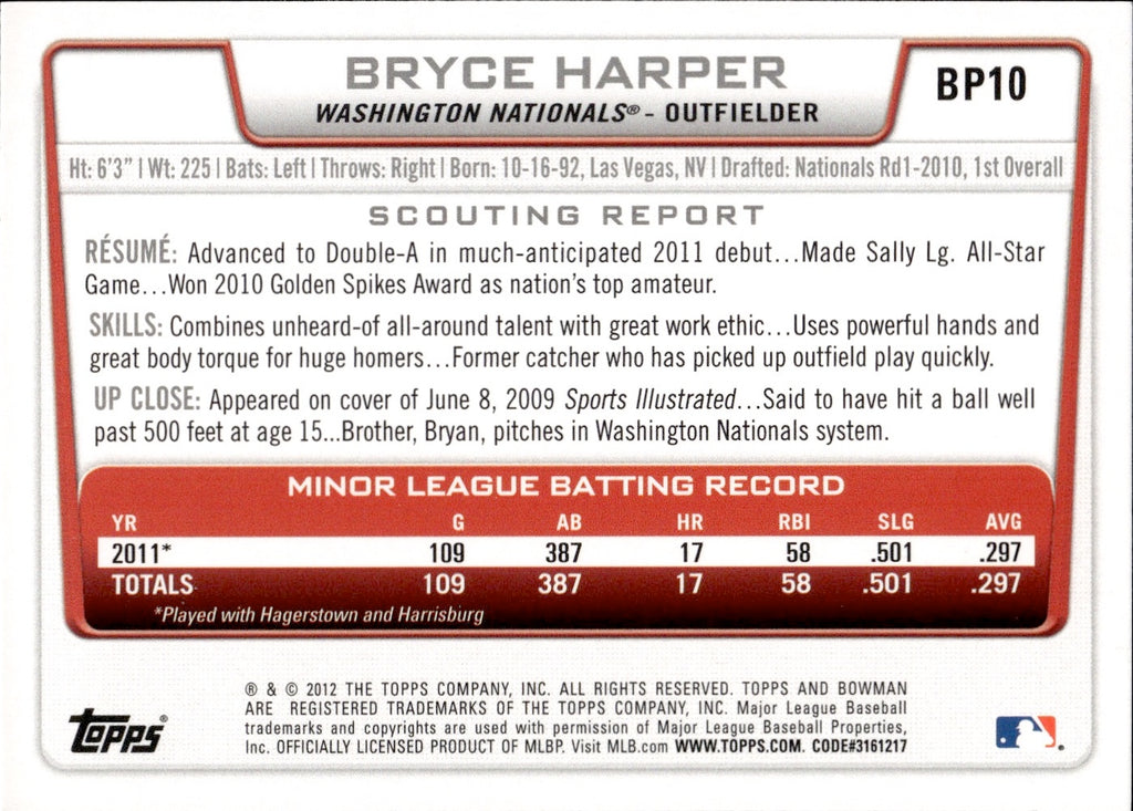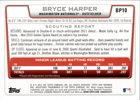 2012 Bryce Harper Bowman PROSPECTS SILVER ICE #BP10 Washington Nationals
