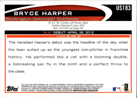 2012 Bryce Harper Topps UPDATE ROOKIE RC #US183 Washington Nationals 1