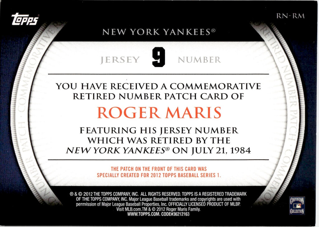 2012 Roger Maris Topps Series 1 COMMEMORATIVE RETIRED NUMBER PATCH New York Yankees #RN-RM