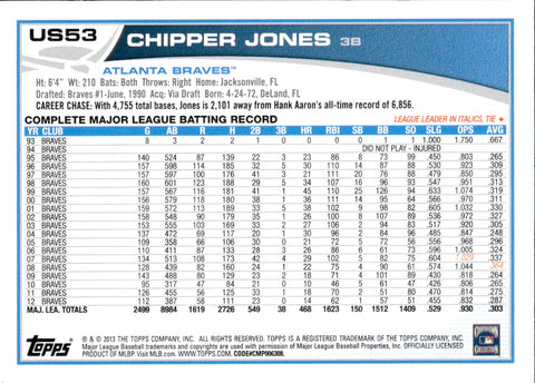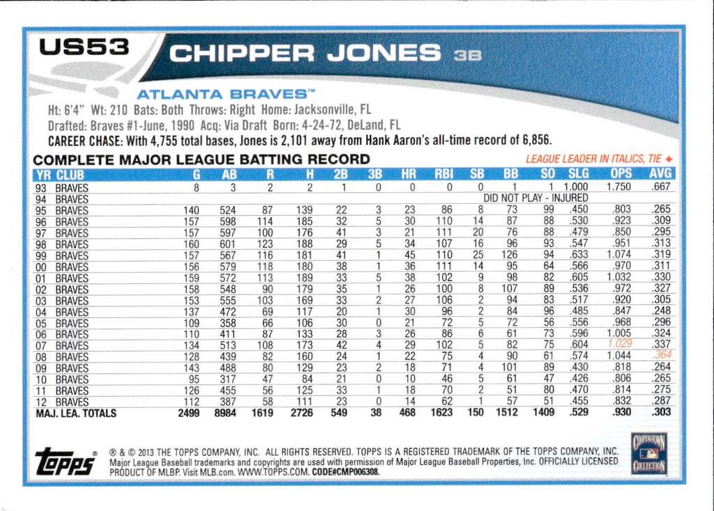 2013 Chipper Jones Topps Update LEGEND SP PHOTO VARIATION #US53 Atlanta Braves