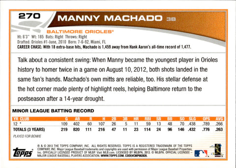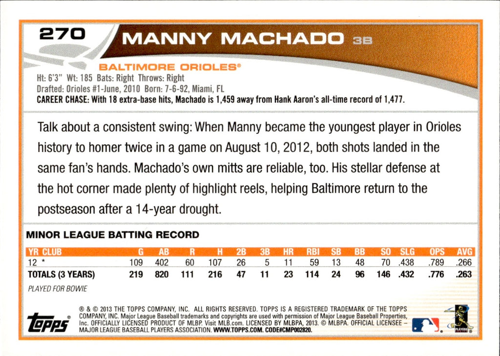 2013 Manny Machado Topps EMERALD GREEN BORDER ROOKIE RC #270 Baltimore Orioles