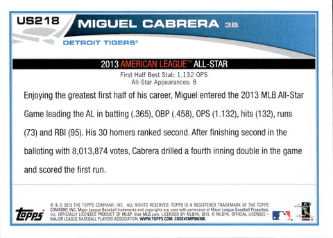 2013 Miguel Cabrera Topps Update ALL-STAR GAME WITH ADAM JONES MIKE TROUT SP PHOTO VARIATION #US218 Detroit Tigers