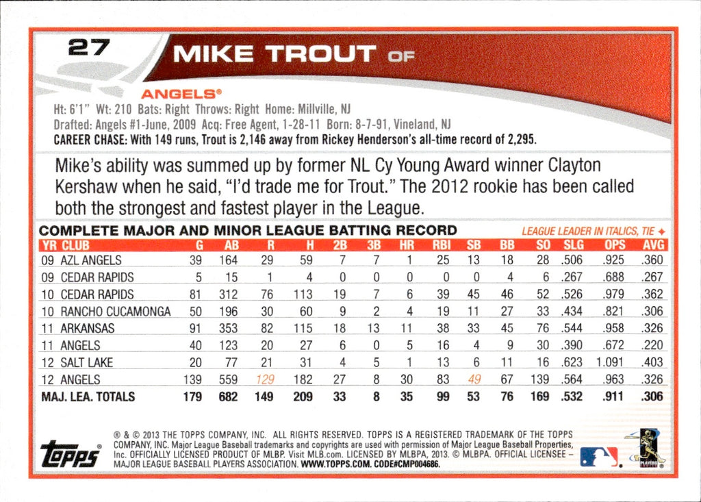2013 Mike Trout Topps SP SIGNING AUTOGRAPHS VARIATION #27 Anaheim Angels