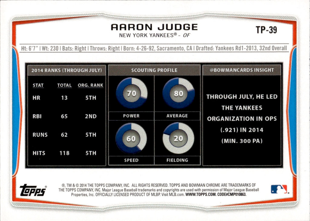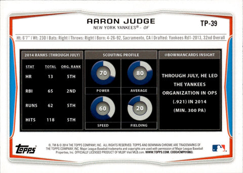 2014 Aaron Judge Bowman SILVER ICE #TP-39 New York Yankees