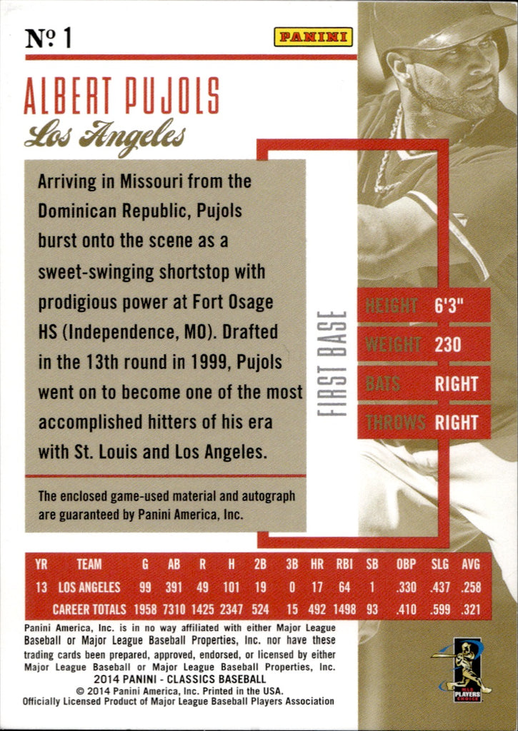2014 Albert Pujols Panini Classics SIGNIFICANT SIGNATURES BAT AUTO 1/5 AUTOGRAPH RELIC #1 Anaheim Angels