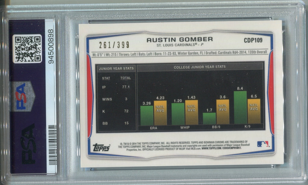 2014 Austin Gomber Bowman Chrome Draft Picks 1ST BOWMAN BLUE REFRACTOR PSA 9 #CDP109 St. Louis Cardinals 0898