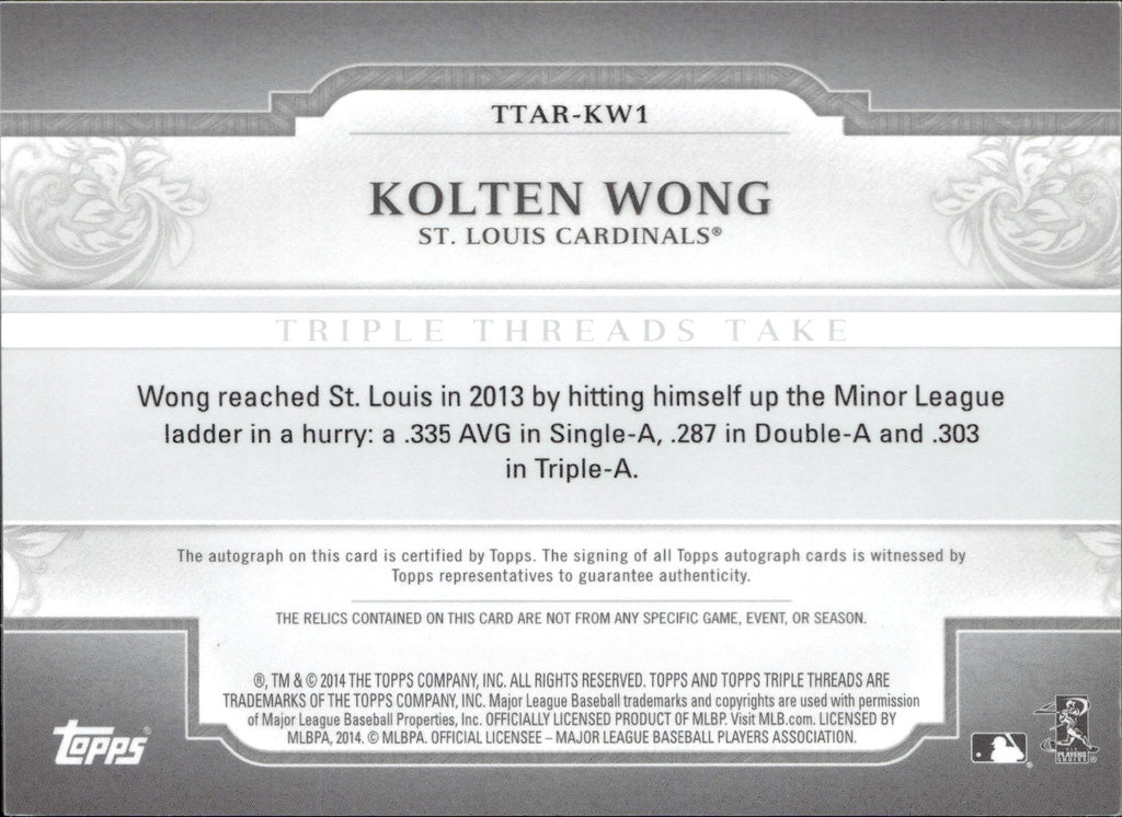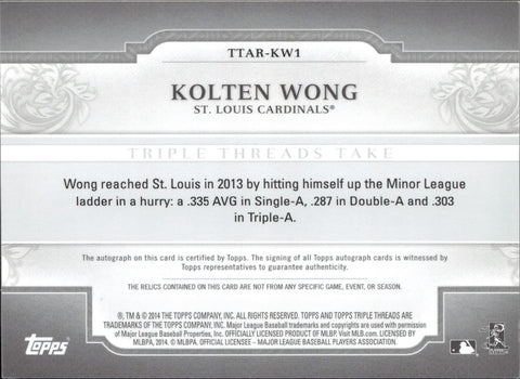 2014 Kolten Wong Topps Triple Threads AUTOGRAPH JERSEY 12/18 AUTO #TTAR-KW1 St. Louis Cardinals