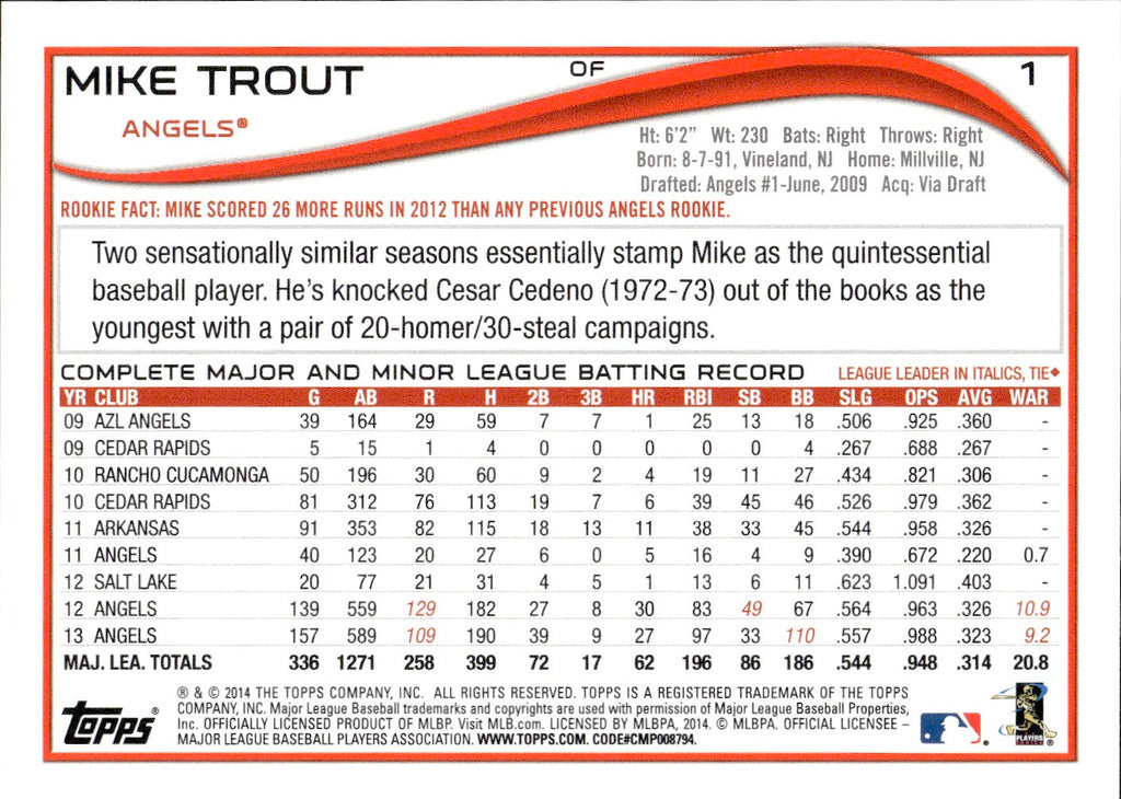 2014 Mike Trout Topps GATORADE BATH CELEBRATION SP PHOTO VARIATION #1 Los Angeles Anaheim Angels