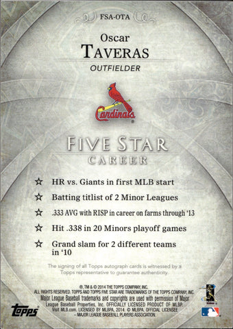 2014 Oscar Taveras Topps Five Star ROOKIE AUTOGRAPH RC AUTO 210/399 #FSA-OTA St. Louis Cardinals
