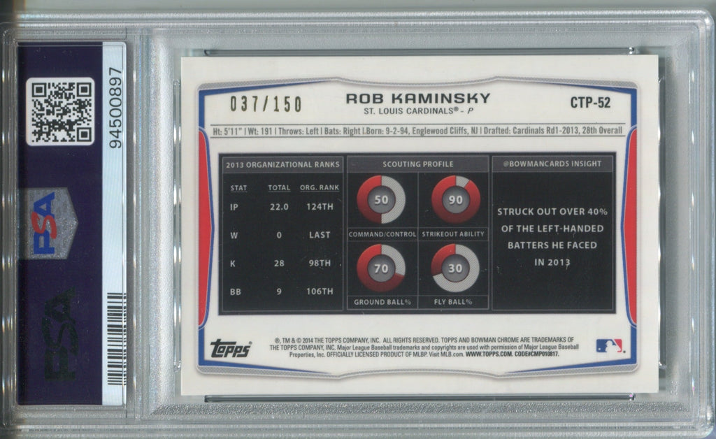 2014 Rob Kaminsky Bowman Draft Picks CHROME TOP PROSPECTS GREEN REFRACTOR ROOKIE RC 37/150 PSA 9 #CTP52 St. Louis Cardinals 0897