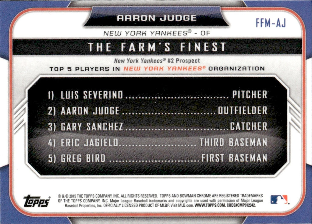 2015 Aaron Judge Bowman THE FARM'S FINEST CHROME MINI SHIMMER REFRACTOR #FFM-AJ New York Yankees
