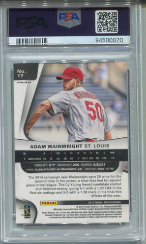 2015 Adam Wainwright Panini Prizm HOLO SILVER PSA 9 #17 St. Louis Cardinals 0970