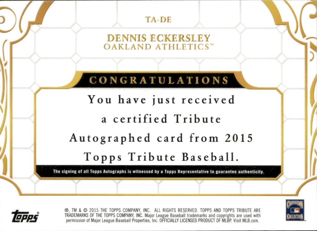 2015 Dennis Eckersley Topps Tribute AUTOGRAPH 73/189 AUTO #TA-DE Oakland A's *SEE AUTO*
