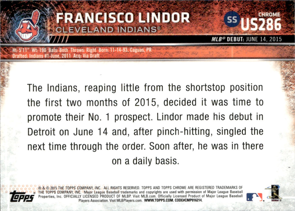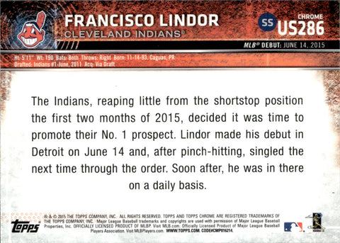 2015 Francisco Lindor Topps Chrome SPARKLE REFACTOR ROOKIE RC #US286 Cleveland Indians