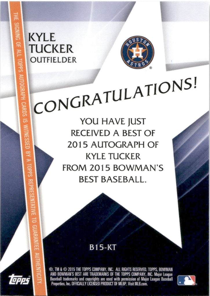 2015 Kyle Tucker Bowman's Best BEST OF 2015 AUTOGRAPH AUTO #B15-KT Houston Astros